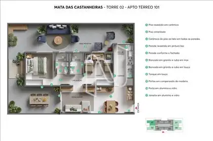 Prédio:  Empreendimento  MRV,  com estacionamento de vagas demarcadas,  vagas para para PCD, elevador, área de lazer com salão de festas, espaço gourmet, vestiários, piscina infantil e adulto, playground, bicicletário, gazebo, redário, pet place, espaço funcional, previsão de portaria 24 horas, gás canalizado e previsão de água individualizada.