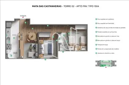 Prédio: Empreendimento MRV, com estacionamento de vagas demarcadas, vagas para para PCD, elevador, área de lazer com salão de festas, espaço gourmet, vestiários, piscina infantil e adulto, playground, bicicletário, gazebo, redário, pet place, espaço funcional, previsão de portaria 24 horas, gás canalizado e previsão de água individualizada.